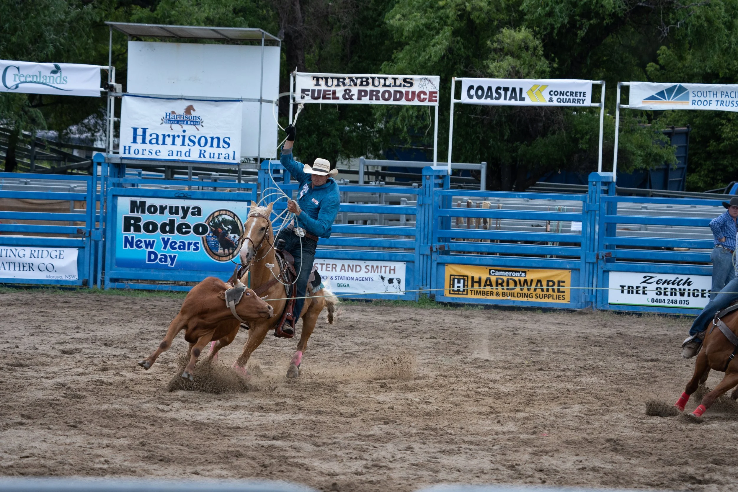 A team-roping event at Moruya Rodeo (Animal Liberation).